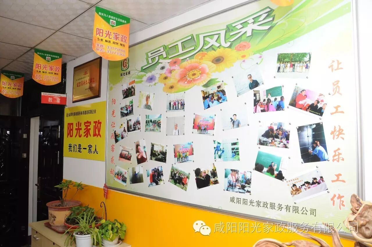 咸阳阳光家政服务有限公司成立于2007年6月,是经国家工商部门及劳动部门批准注册登记的专业型公司,注册资金60万元。家政部:专业提供金牌月嫂,高级育儿嫂,高素质保姆,老人陪护,钟点工等各类家用人才。保洁部:承接家庭保洁,企事业单位保洁等各项保洁业务。
